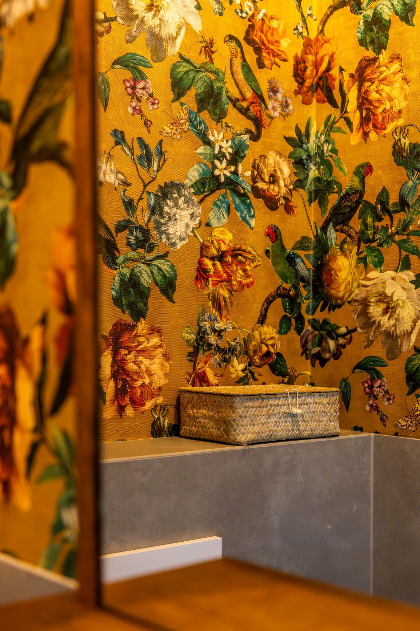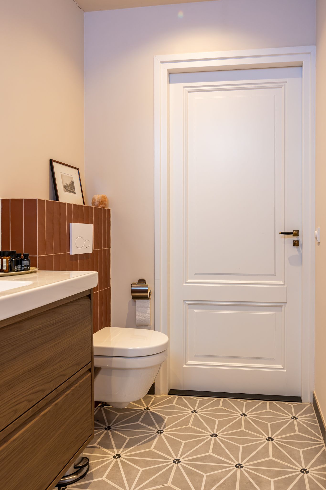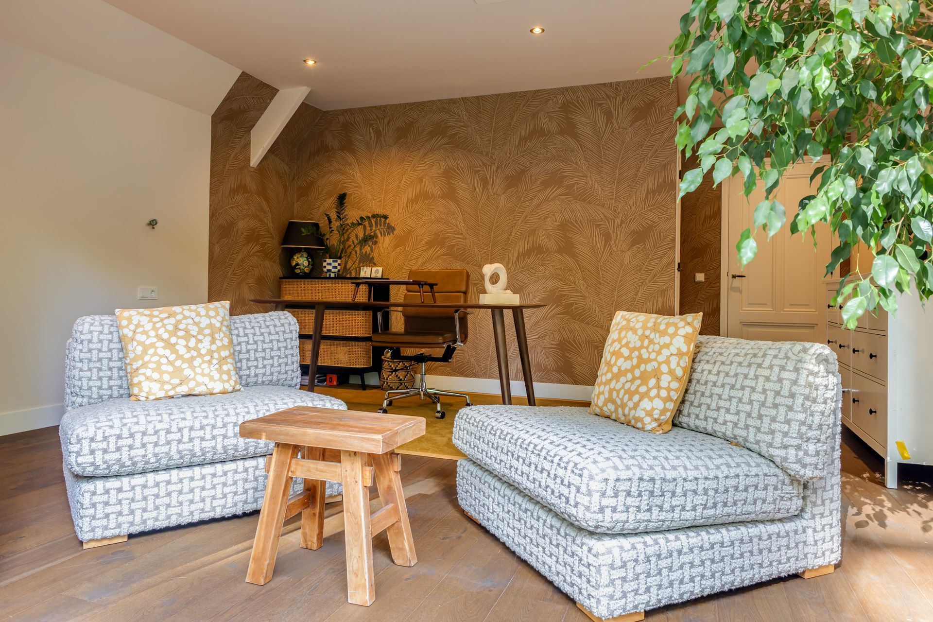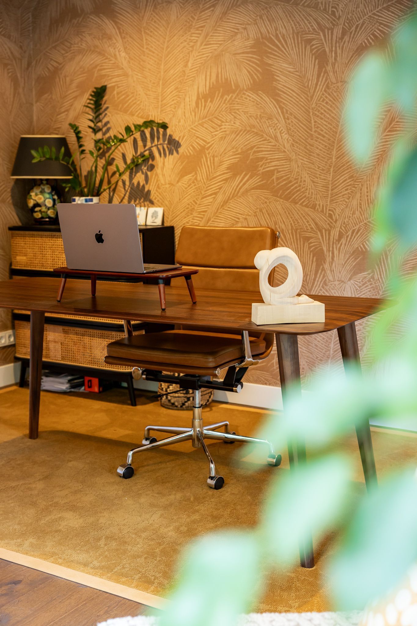 De basis van het interieur bestaat uit rijke, warme tinten en natuurlijke materialen. Groen speelt een hoofdrol en zet direct de toon: uitgesproken, maar zorgvuldig toegepast. In combinatie met hout, messing en zachte texturen ontstaat een gebalanceerd geheel waarin elke ruimte zijn eigen karakter heeft.