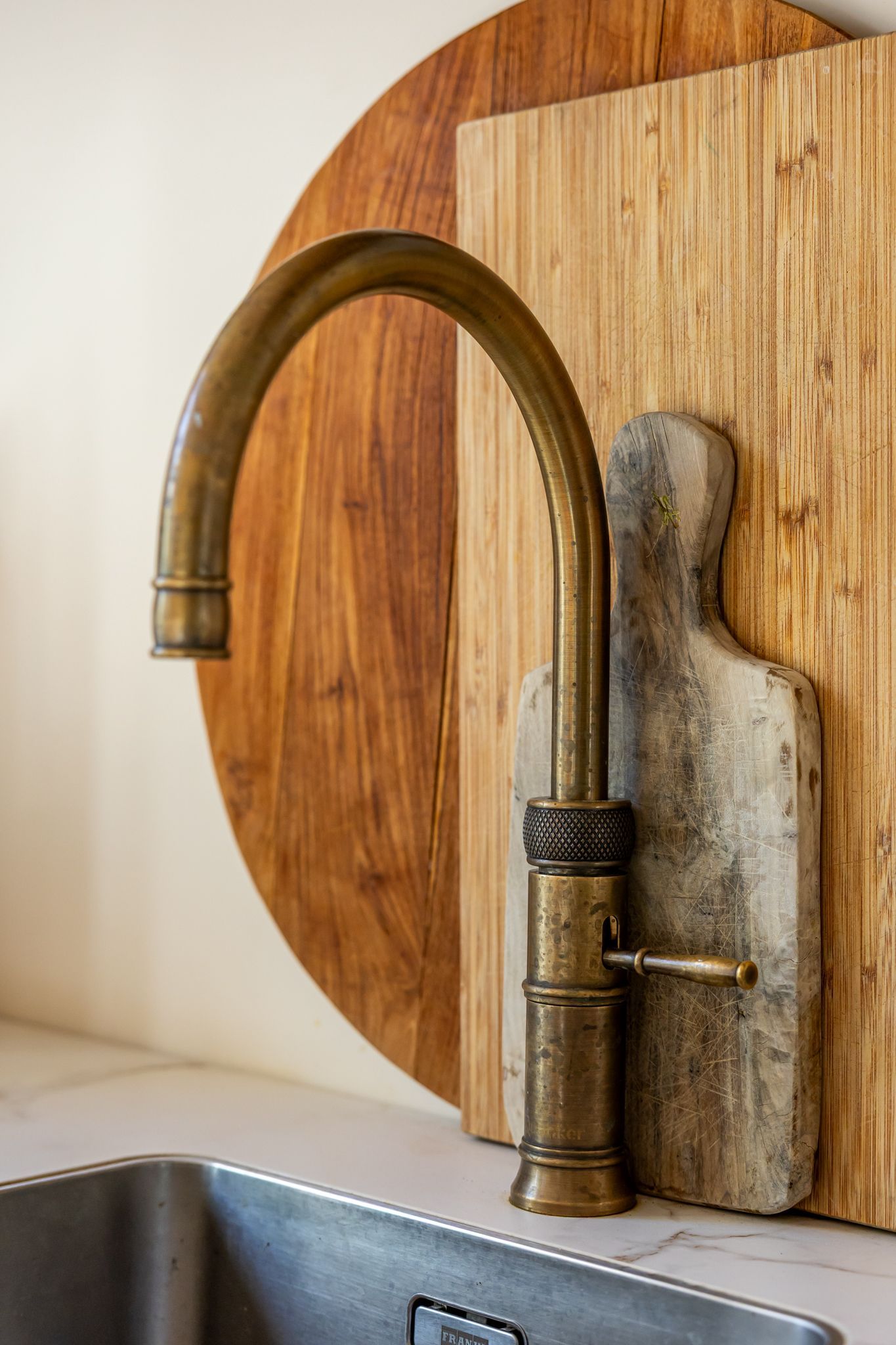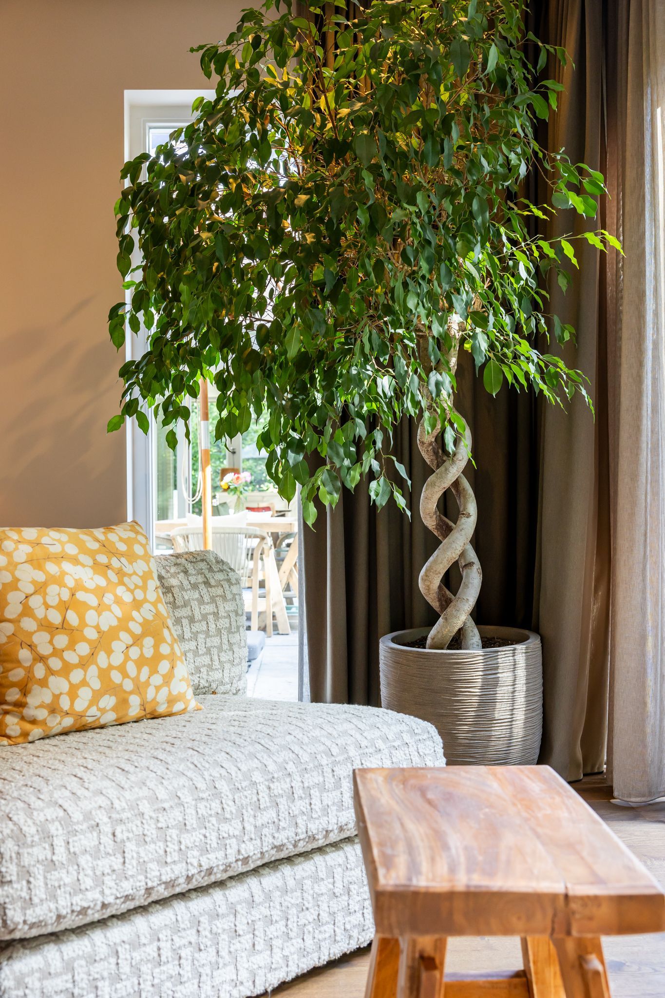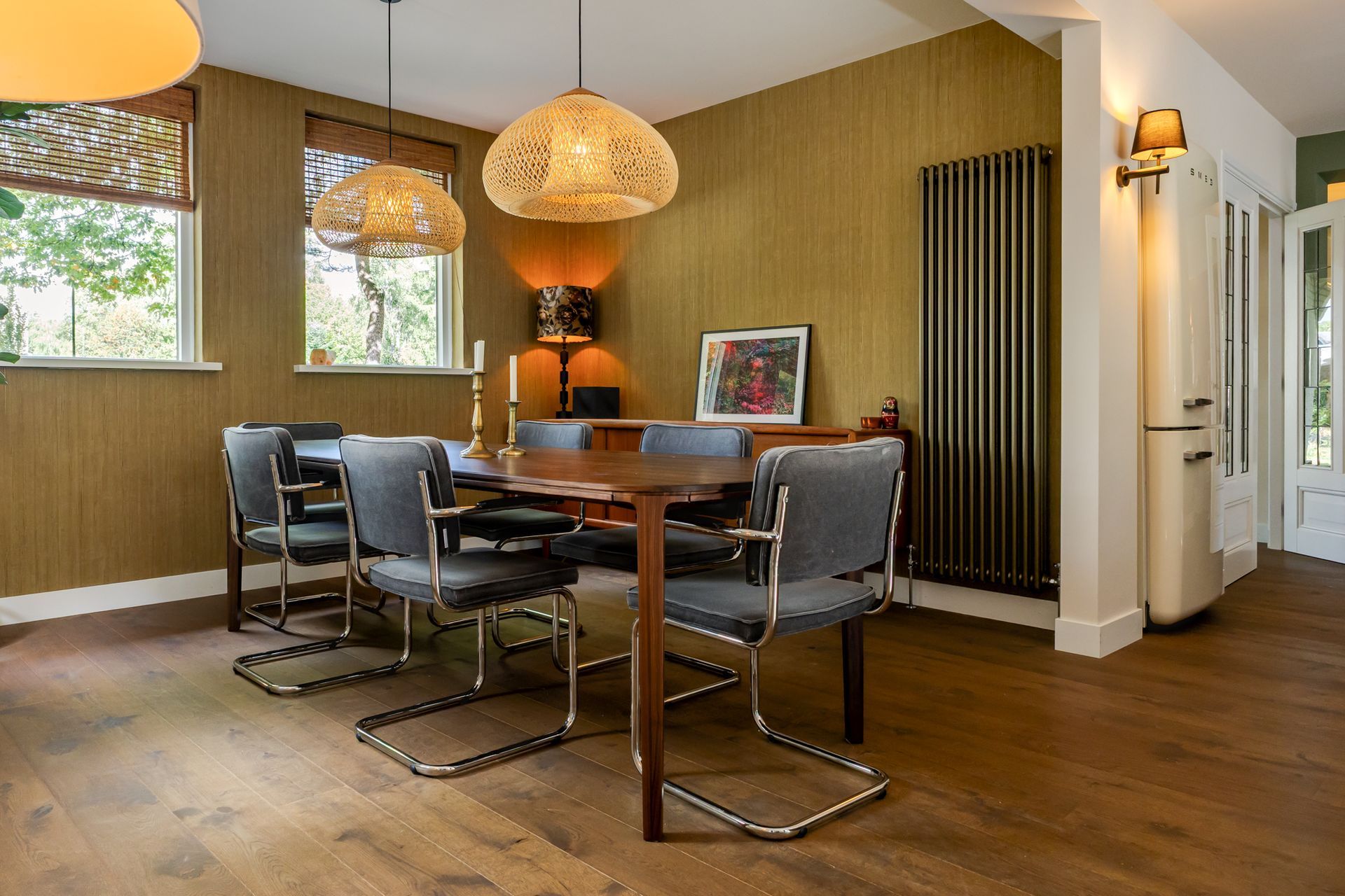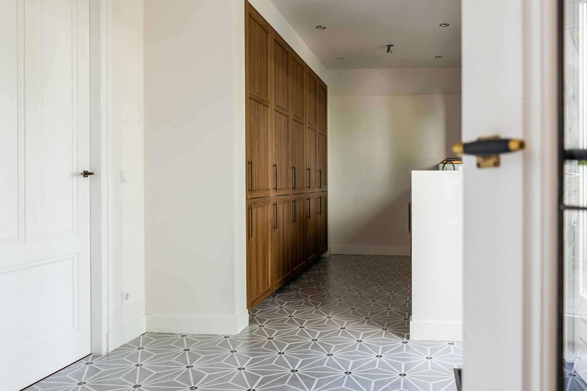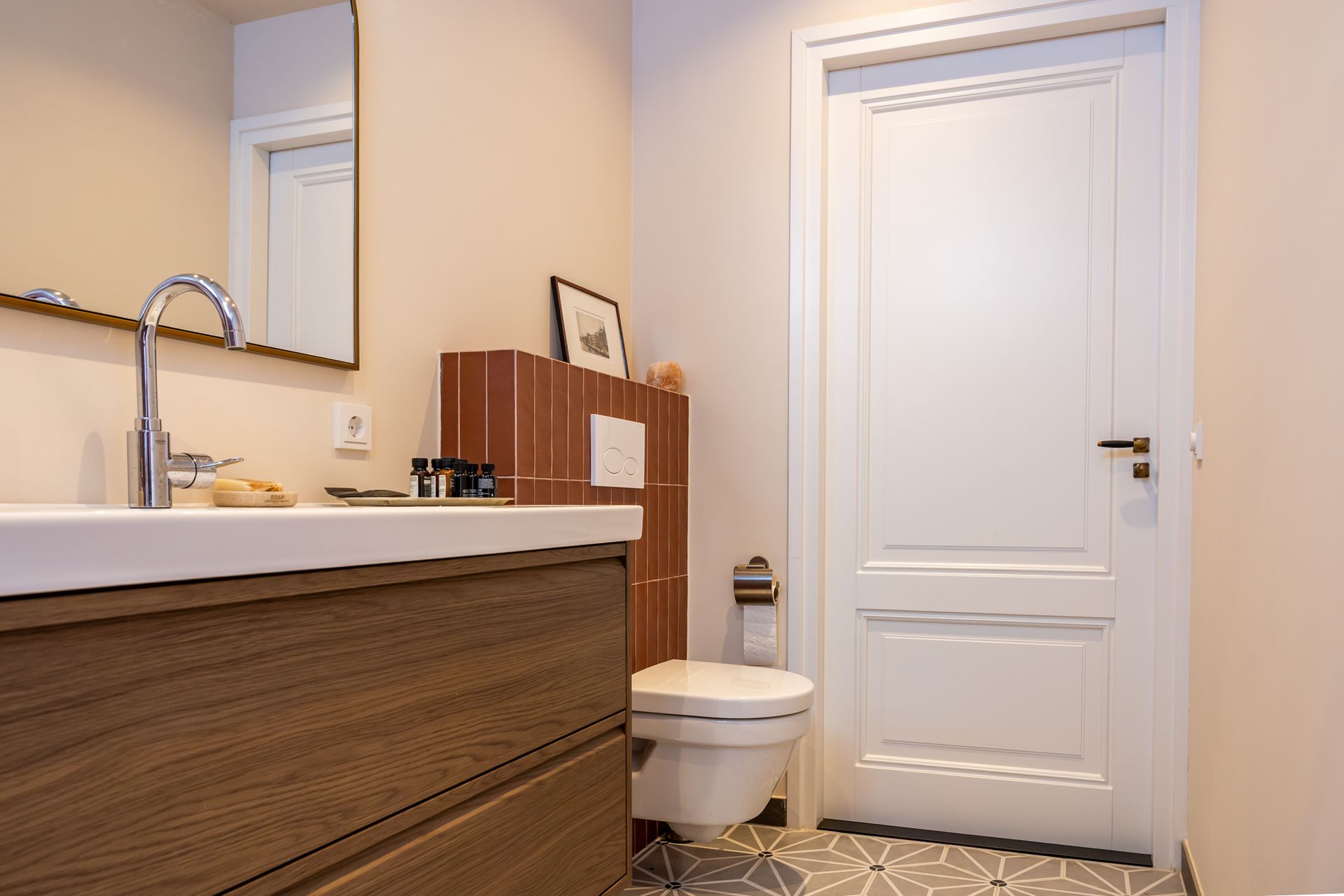 De basis van het interieur bestaat uit rijke, warme tinten en natuurlijke materialen. Groen speelt een hoofdrol en zet direct de toon: uitgesproken, maar zorgvuldig toegepast. In combinatie met hout, messing en zachte texturen ontstaat een gebalanceerd geheel waarin elke ruimte zijn eigen karakter heeft.
