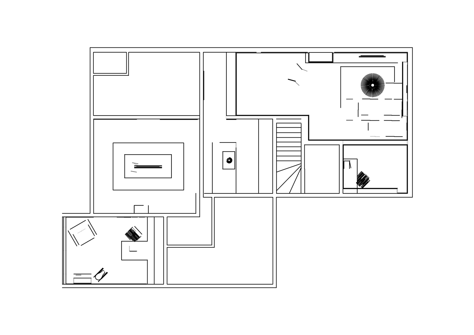 het is een bijzondere ruimte die op bepaalde plekken niet zozeer ruim is. Daar waar de bank komt te staan zit je met een vreemde hoek die je met de bank ook direct weer afscheid van de rest. Door een modulaire bank van te maken waar je aan beide kanten van kan zitten betrek je de andere ruimte weer meer bij de rest.