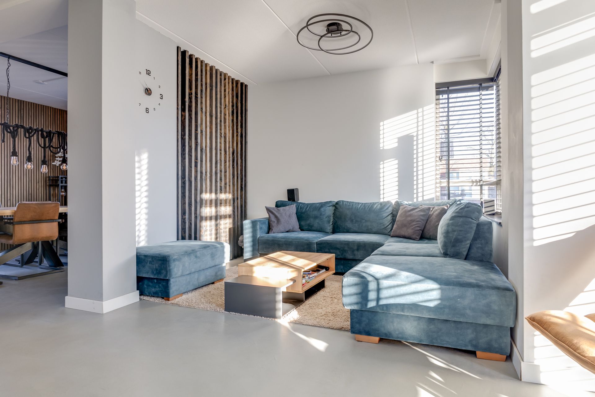 Dit hebben we gerealiseerd door middel van warme materialen zoals hout maar ook de kleur van cognac in de meubelen. Daarnaast is de woning behoorlijk licht dus konden we de koele tinten goed en subtiel terug laten komen.