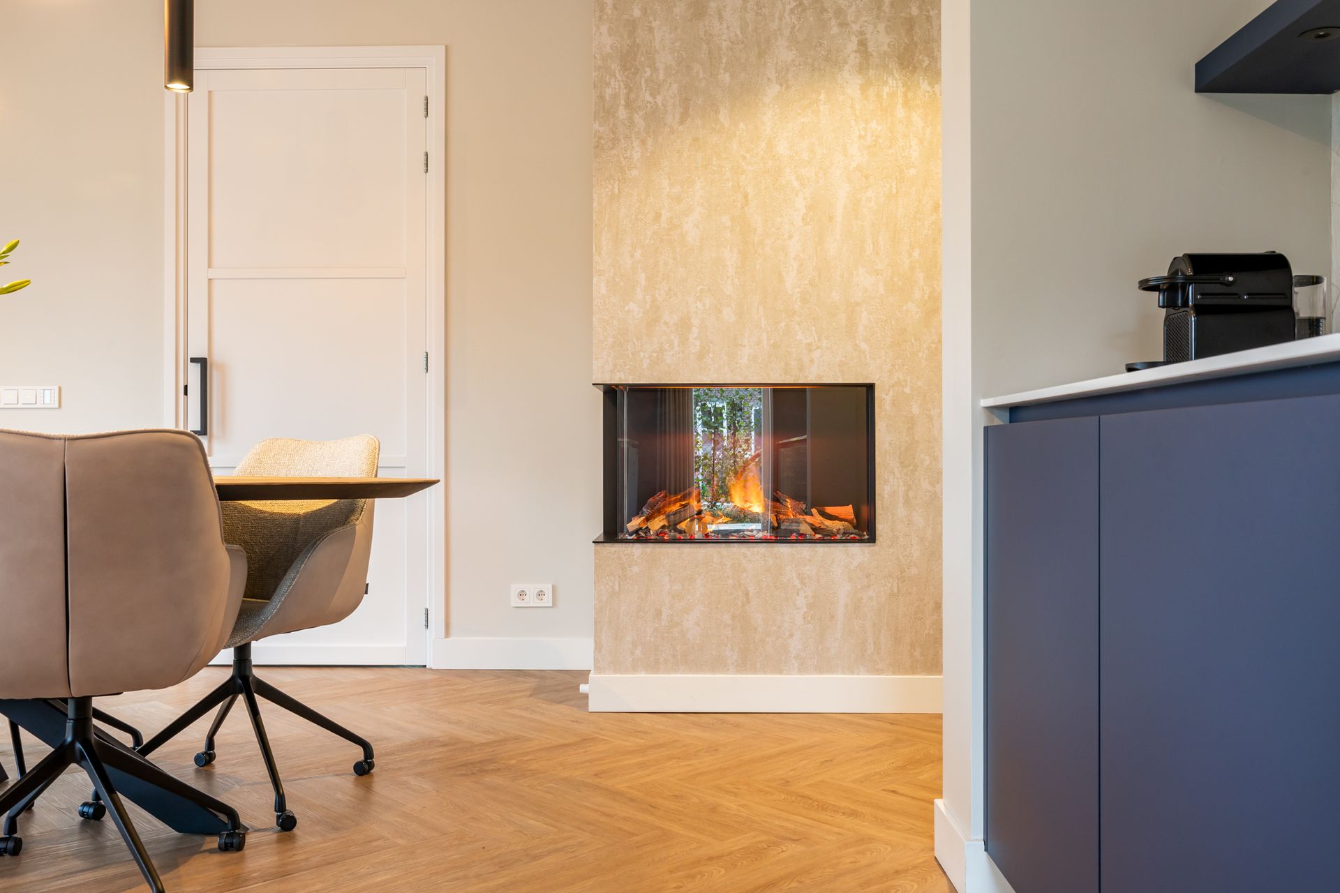 Doormiddel van maatwerk, uitgesproken kleuren en een passend kleurplan hebben we een modern, warm en chique interieur weten neer te zetten.