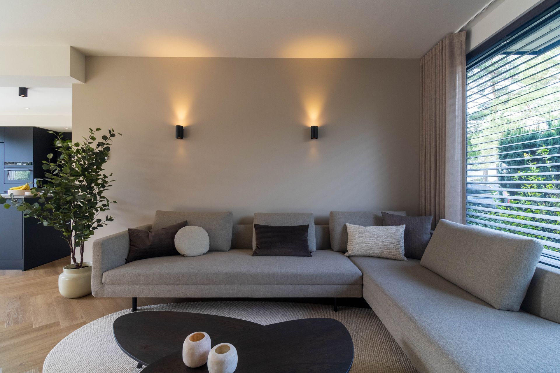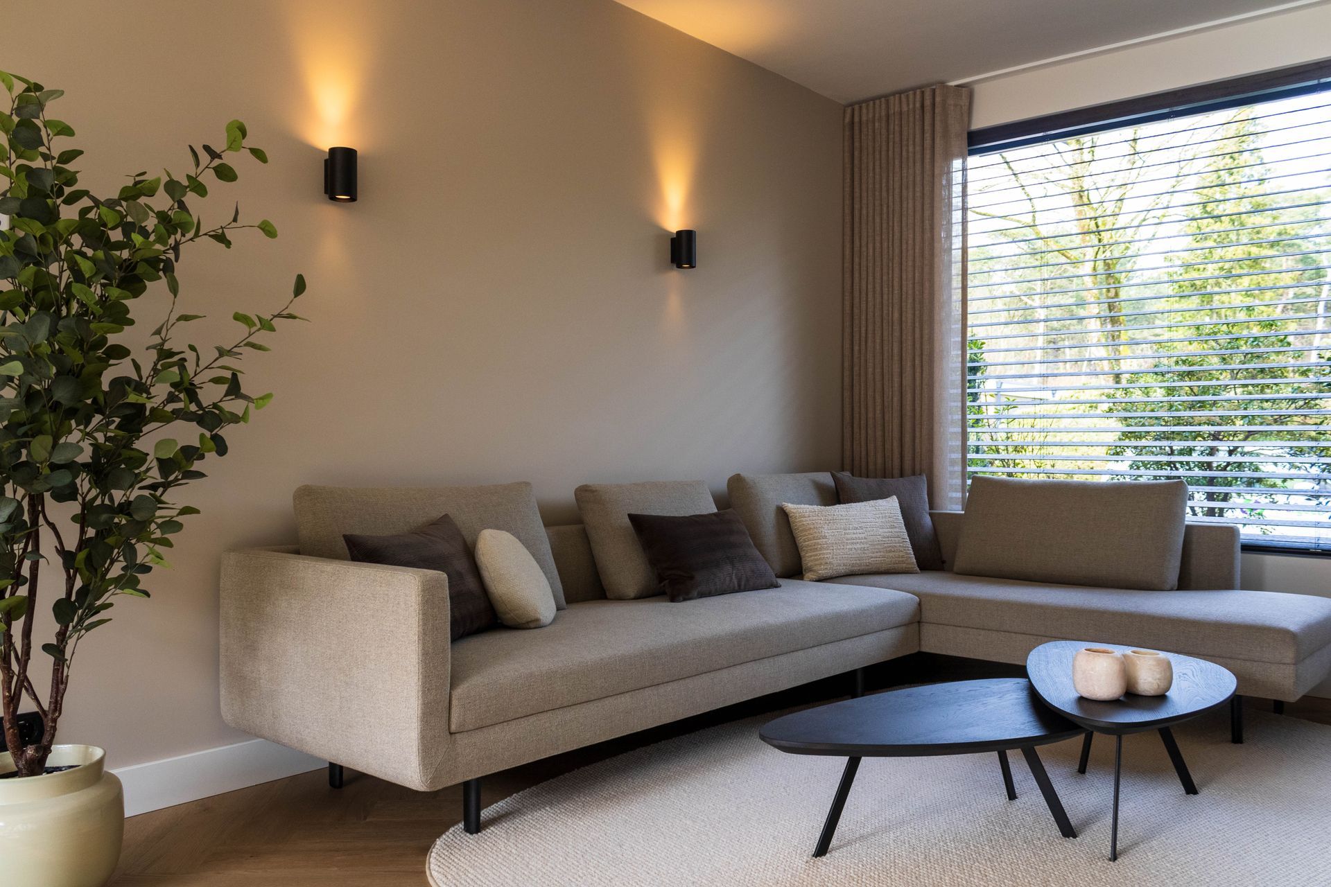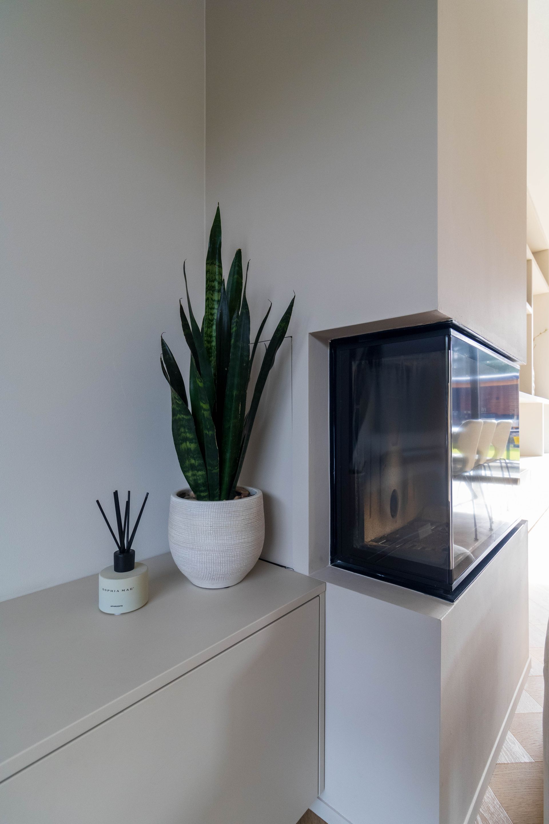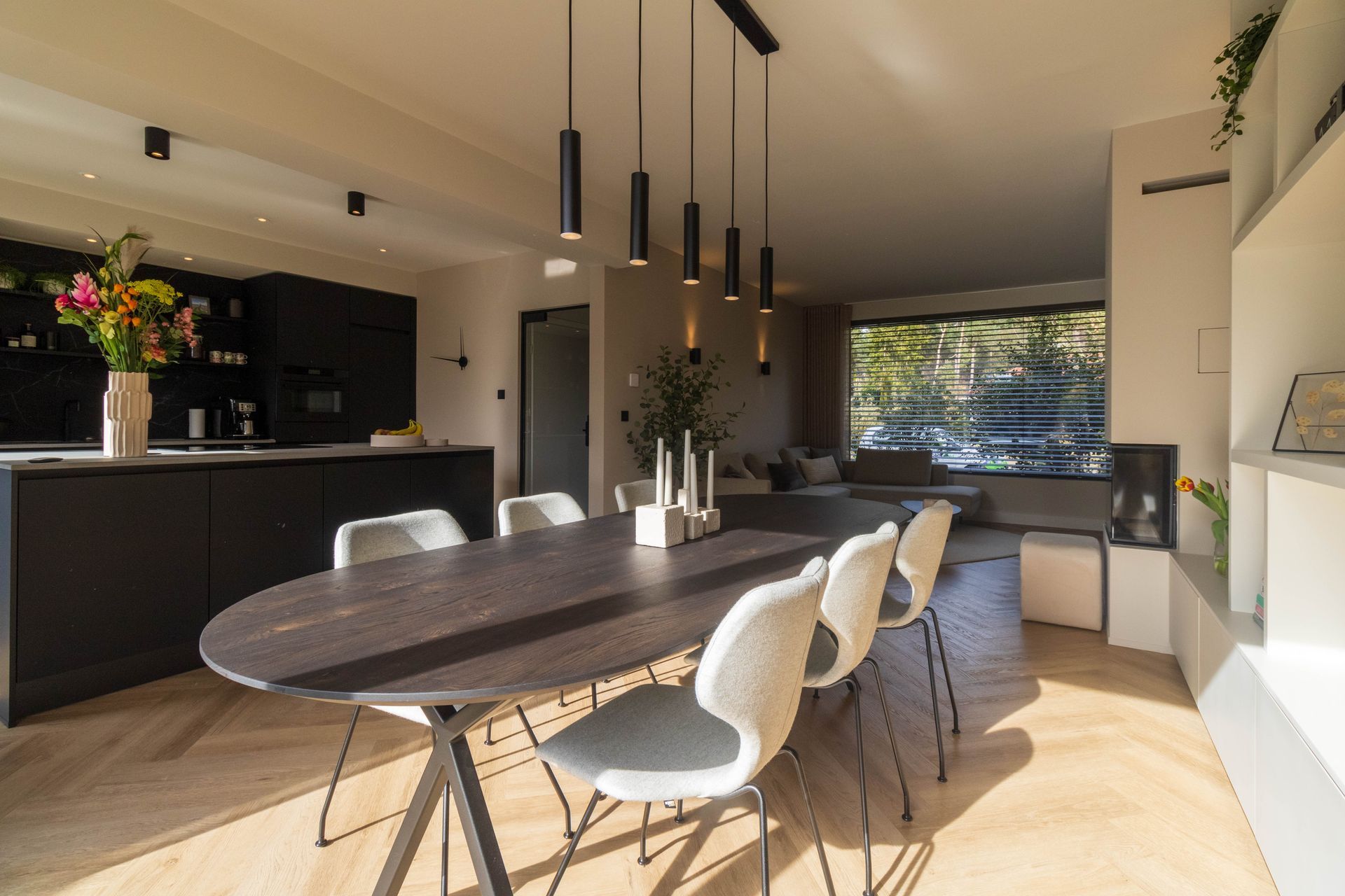 Hier zijn wij mee aan de slag gegaan en hebben een rustig ton sur ton pallet gecreëerd wat aangesterkt wordt door de zwarte materialen zoals de keuken maar ook de eettafel. Dit gecombineerd met de meubelen van Design on stock maat een fris en compleet beeld.